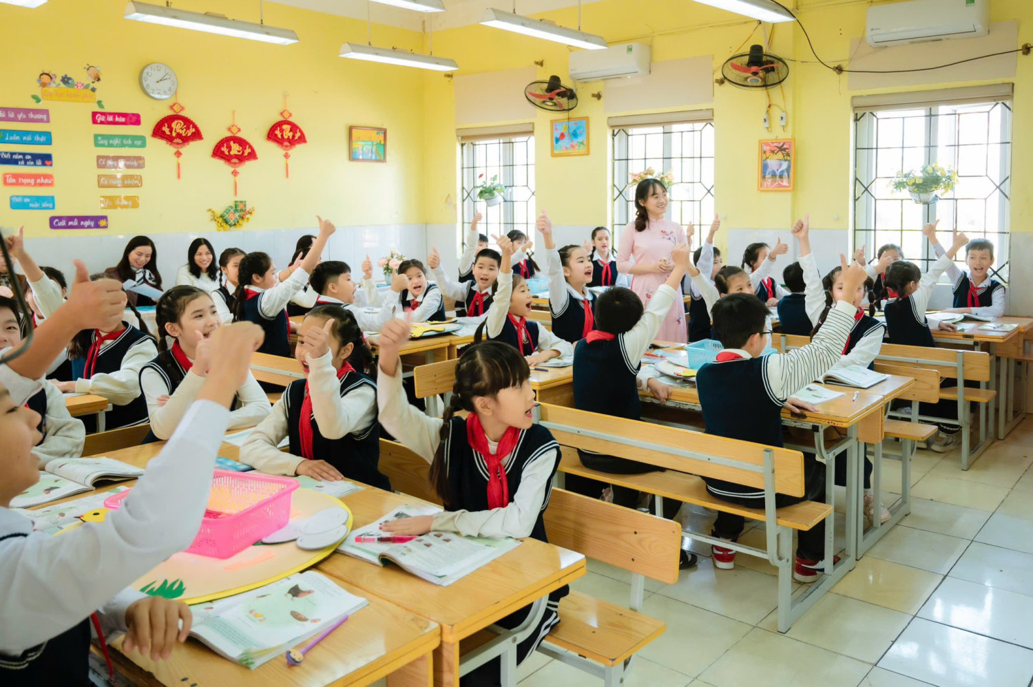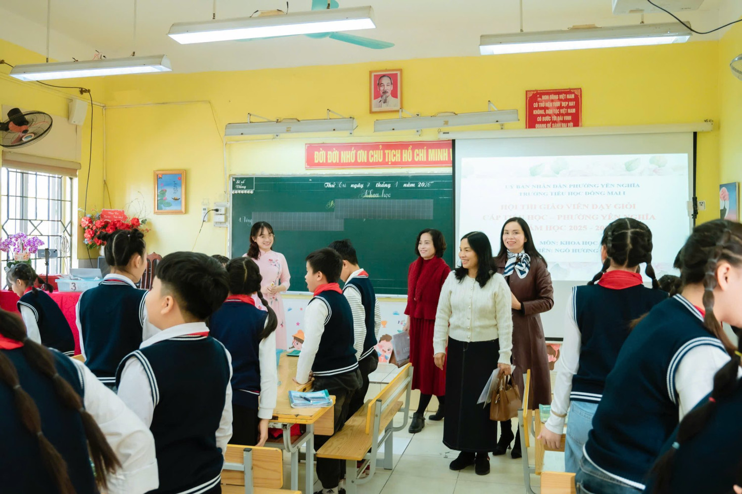 Nhà trường xin trân trọng cảm ơn Ban Giám khảo Hội thi, các thầy cô đồng nghiệp đã dành thời gian dự giờ, góp ý và động viên. Xin gửi lời cảm ơn tới tập thể học sinh lớp 5A3 – những “nhà khoa học nhỏ” đầy tự tin, sáng tạo và nỗ lực. Đặc biệt, xin chúc cô giáo Ngô Hương Giang luôn giữ trọn ngọn lửa đam mê, tiếp tục lan tỏa những giờ học hạnh phúc và truyền cảm hứng tới các thế hệ học sinh thân yêu.